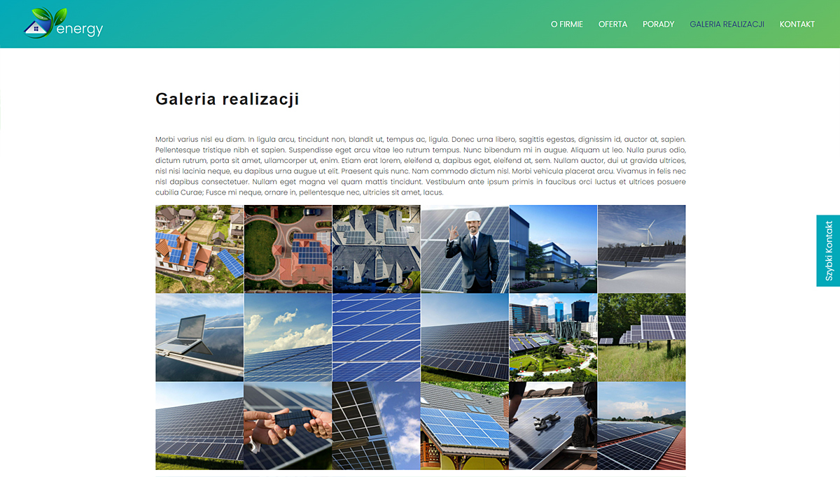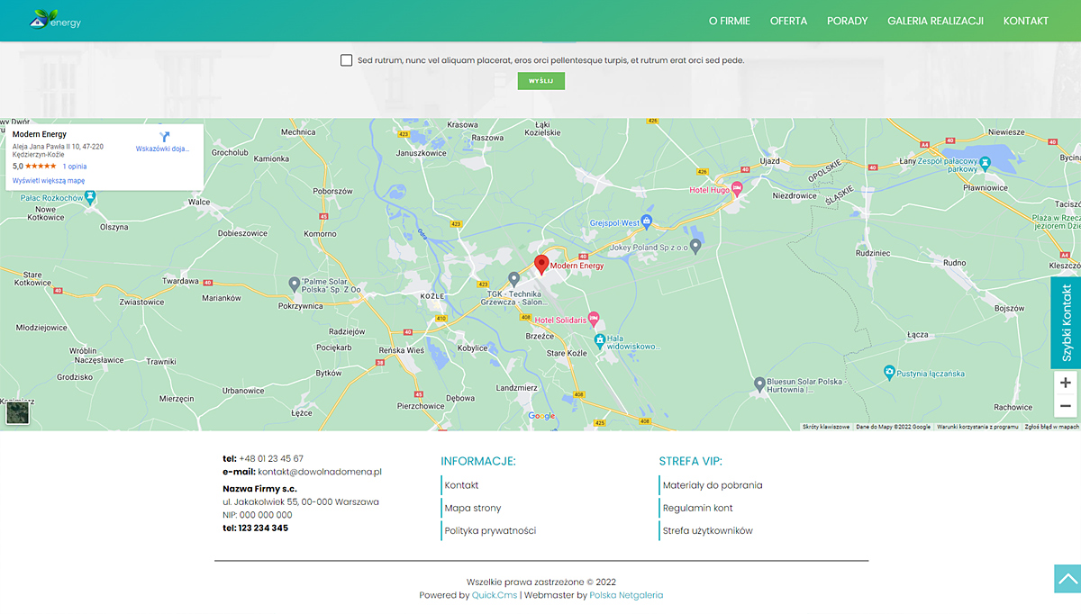 Przykład firmowej strony internetowej, zbudowanej na podstawie profesjonalnej wersji projektu.